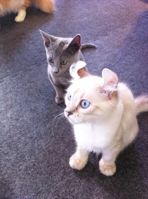 旦那様がネットで見つけてくれました。 今まで一番近くて富士市だったので、遠かった。 でも沼津なら近いぞ! という訳で、友人二人と早速昨日行って来ました! 猫カフェ「にゃんこ」さん。 http://locoplace.jp/t000249725/ 一時間千円でワンドリンク付きというのが安くて良いし、 ドリンクが凄い種類豊富で、そして美味しかったです。 空間は広くて、清潔で、猫天国で(当たり前か)、 何ともくつろいで猫さんたちと戯れる事が出来ました。 既に常連さんらしき方なども居ましたが、 興奮でキャーキャー言ってしまった。ごめんなさい。 でもハイテンションに成らざるを得ない空間だよ~。 今回は一眼レフは持っていかなかったので、 iPhone画像で申し訳ないですが、 撮影した猫ちゃん画像を一挙公開。 (クリックすると大きくなります) これ、まだまだ一部なんですよ。 25匹も居たの! その子たちが、群れをなして寄ってきてくれるのよ! そして、お膝に乗って来たりしてくれるのよ! あぁ、ここが天国か…。 まだ子猫ちゃんも居て、しかもロシアンブルーの 子猫が二匹も居てうっとり。 アークもあんな頃があった…ような…気がする。 今は私の手を傷だらけにするけれども…。 一時間半居ましたが、あっという間で、 猫スタッフさんの魅力に「え、延長で…」とか 言いそうになってしまいます。 しかしながら、一緒に行った友人が二人とも クシャミが止まらなくなってしまったので、強制終了。 アレルギーかいな(涙)。 二人とも花粉症持ちだから、元々アレルギー体質かな? アークだけの我が家に来ても平気だったから、 沢山居たし、長毛の子も居たから強めに出ちゃったのかな? 何はともあれ、皆猫好きしか店内に居ないし、 オーナーさんはとても優しかったし、 是非また行きたいです。 |